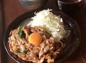 豚肉のガツンとにんにくスタミナ炒め(卵黄のせ)