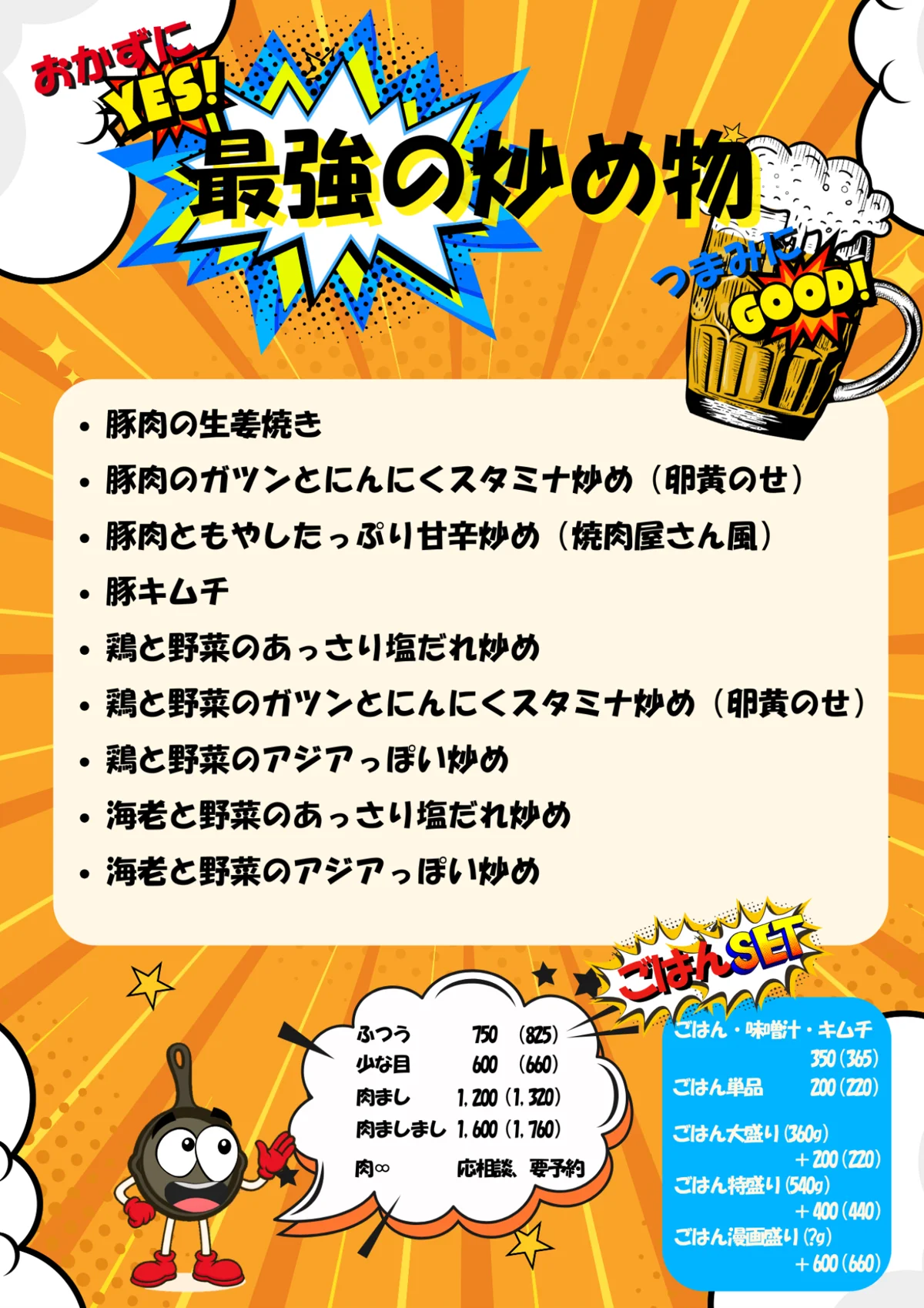 | ごはん特盛り(540g) | 805円 |