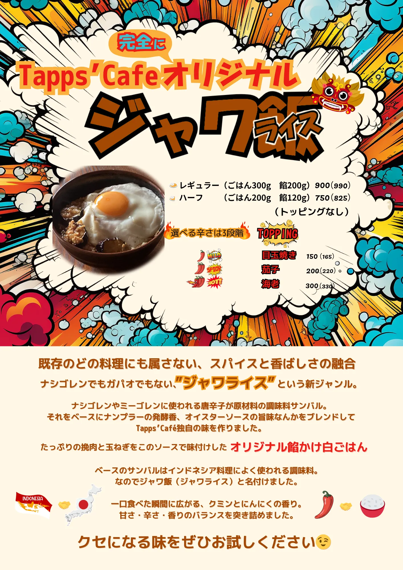 スタートがナシゴレンだから「ジャワ」、丼物だから「飯」。